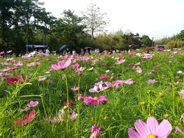 空明橋花田3000平方米混色波斯菊,有時(shí)候也種植金魚草;
