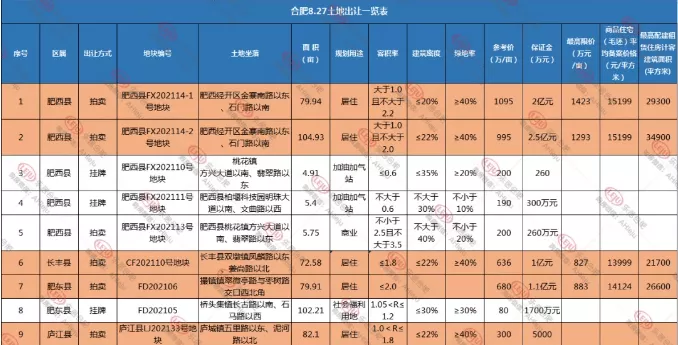 ??8月土拍定于8月27日,截止目前,合肥四縣一市共9宗地待出讓,包含5宗居住地、4宗非居住地,面積達(dá)537.73畝。