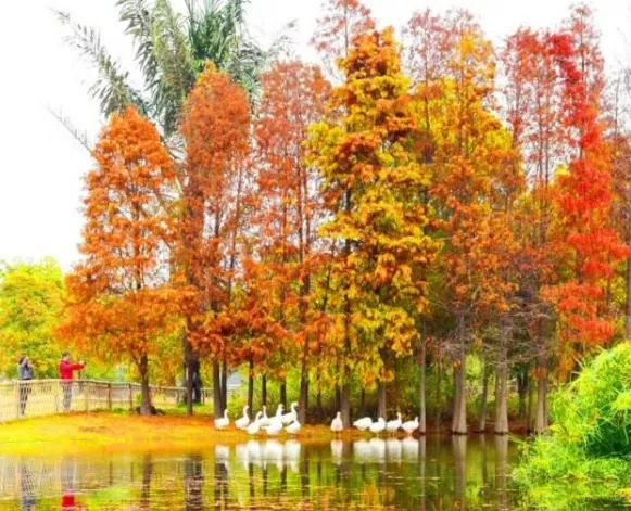 園內(nèi)澳門園區(qū)的墨西哥落羽杉,一到休眠期,枝葉會(huì)逐漸從綠色轉(zhuǎn)向黃色和古銅色,簡(jiǎn)直就是美如畫;