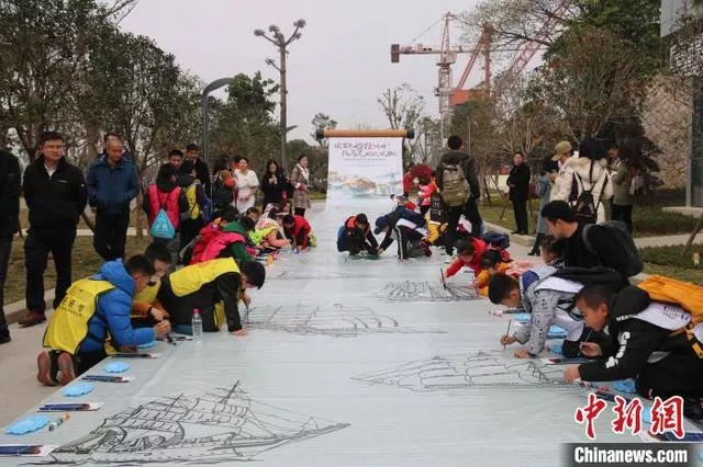 現(xiàn)場活動(dòng)形式豐富多彩,有百位市民及游客繪制30米長的“萬艦齊發(fā)強(qiáng)我中國”馬尾船政歷史畫卷的線稿;有船政小劇場,話劇演員表演有關(guān)船政的話劇,再現(xiàn)當(dāng)年船政課堂景象;有兒童朗誦《少年中國說》……