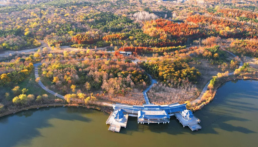 “共享庭院”推行的背后折射出宿遷市住建局的創(chuàng)新管理理念,這樣的創(chuàng)新在“具美評審機(jī)制”中同樣得以體現(xiàn)。去年4月,作為宿遷市區(qū)民生園林綠化重點(diǎn)建設(shè)項(xiàng)目的鳴鳳漙公園,在歷時(shí)8個(gè)月的建設(shè)后正式投入使用。公園占地2.5萬平方米,設(shè)“浪漫花徑”、“水塬天地”、“水灣棧道”、“城市綠芯”四個(gè)功能區(qū)。其中,“水灣棧道”的概念取自黃河“九曲十八彎”的形態(tài)。古樸的木質(zhì)棧道綿延曲折,好像一只金色鳳凰安靜地棲息在水面。古老的黃河與靜謐的池塘流通交匯、蜿蜒流淌。同時(shí),河岸兩側(cè)種植茭白、浮萍、金魚藻等水生植物,不僅可以凈化水質(zhì),還可以營造出水綠相映的岸線景觀。