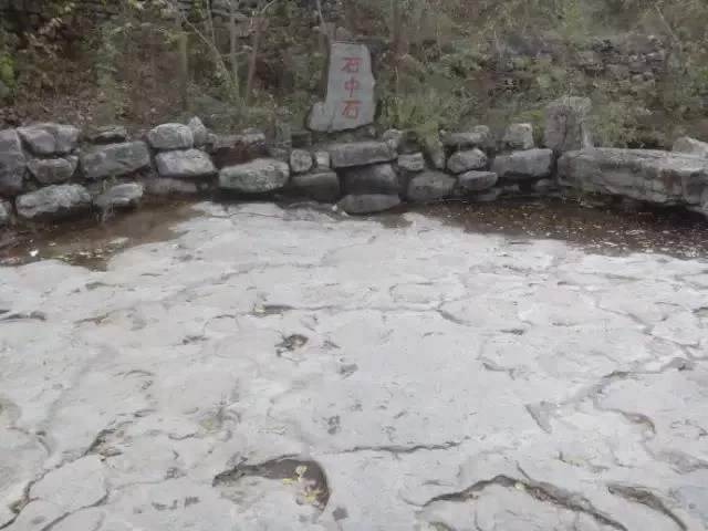 沿河床的石面向前走,在平整的巖石中包裹著一個(gè)一個(gè)圓形的、橢圓形的石塊,當(dāng)?shù)乩相l(xiāng)稱為“石中石”。 (形成原因:在距今14---10億年間,這里為淺海環(huán)境,當(dāng)時(shí)氣候潮濕炎熱,陸地上的大量碳酸鎂和碳酸鈣被水溶解帶到海洋中沉淀,形成石灰?guī)r或白云巖,同時(shí)陸地上的二氧化硅也以膠體的形式被帶到海洋中,那些二氧化硅膠體往往一團(tuán)一團(tuán)地滾到海洋中,并隨海洋里正在沉積的石灰?guī)r和白云巖一起沉積。所以這石中石就是海洋中兩種不同物質(zhì)同時(shí)沉積形成的一種巖石)。