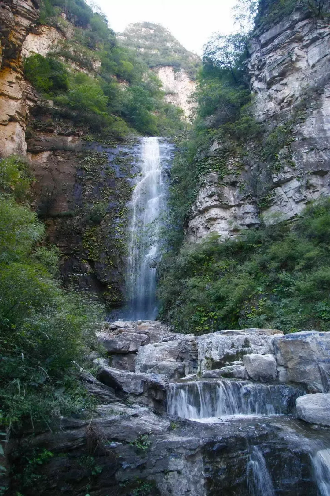 孤山寨峽谷中,水量充沛,拾階而上,視野越發(fā)開闊,一個(gè)瀑布接著一個(gè)瀑布螺旋上升,自下而上觀看或者自上而下,峽谷的風(fēng)光甚是壯觀。瀑布群潭多、瀑高、水量大,壯觀無比,在我國(guó)北方實(shí)屬罕見。可以一邊登山一邊玩水一邊賞景。