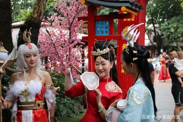 和COSPLAY龍鳳仙合影中午12:08分,伴隨著精彩舞獅表演,正式拉開黃龍溪玉鳳巷美食開街儀式的盛大序幕,現(xiàn)場人頭攢動,場面熱鬧非凡!炎炎夏日、一片狂歡……