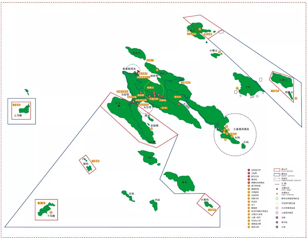 海濱浴場 → 虎嶼雄姿 → 大山和南麂山(南麂日出觀賞點) →保護區(qū)區(qū)碑