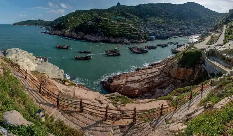 岙口寬1000米,長1900米,三面環(huán)山,是南麂列島唯一的優(yōu)良避風(fēng)港,也是重要的軍港,進出南麂島的快艇碼頭也在這里,不論是東南風(fēng)、西南風(fēng)、東北風(fēng),船只停泊在澳里面都很安全。