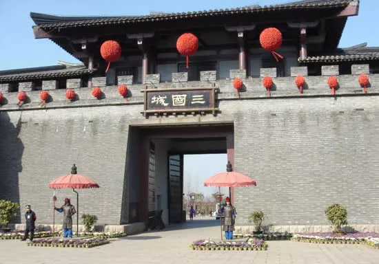 三國城位于無錫市西南郊,西靠青龍山,北臨太湖,與著名旅游勝地黿頭渚、三山隔湖相望?!叭龂恰笔侵醒腚娨暸_為拍攝“三國演義”命名興建,占地三十五公頃,1994 年8月20日作為無錫太湖影視城影視旅游新景點正式對外開放.“三國城”內(nèi)建造了具有漢代風(fēng)格、建筑面積八萬五千平方米的“吳王宮”、“甘露寺”、“曹營水寨”、“七星壇”、“烽火 臺”、“轅門”等大型景點,還配套建造了二十多條古戰(zhàn)船,三國劇組在此拍攝了全劇最精彩的“劉備招親”、“火燒赤壁”、“草船借箭”、“諸葛亮祭風(fēng)”等重頭戲。此外,景區(qū)內(nèi)還增添 了“桃園三結(jié)義”場景、競技場、八卦陣,開發(fā)了草船借箭、古船游樂、湖濱浴場、跑馬、歌舞表演等參與項目?!叭龂恰闭麄€景區(qū)氣勢雄偉,內(nèi)涵深遠(yuǎn),漫步其中,每一座轅門、每一塊磚石都仿佛在向游客訴說著那紛爭亂世中一個個驚心動魂的故事。三國城是一座以影視制作為主、兼顧旅游功能的雙棲城,吸引著眾多的游客前來參觀。