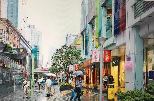 根據(jù)效果圖,四季坊將用上下通透的整體玻璃幕墻取代二層陽臺,在為主力店品牌保留大型外立面的基礎(chǔ)上,錯落穿插上樓階梯,并用一座人行天橋和對面的商鋪相連通。