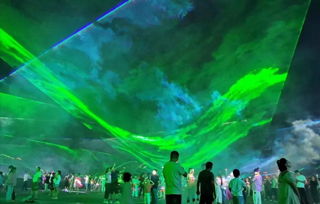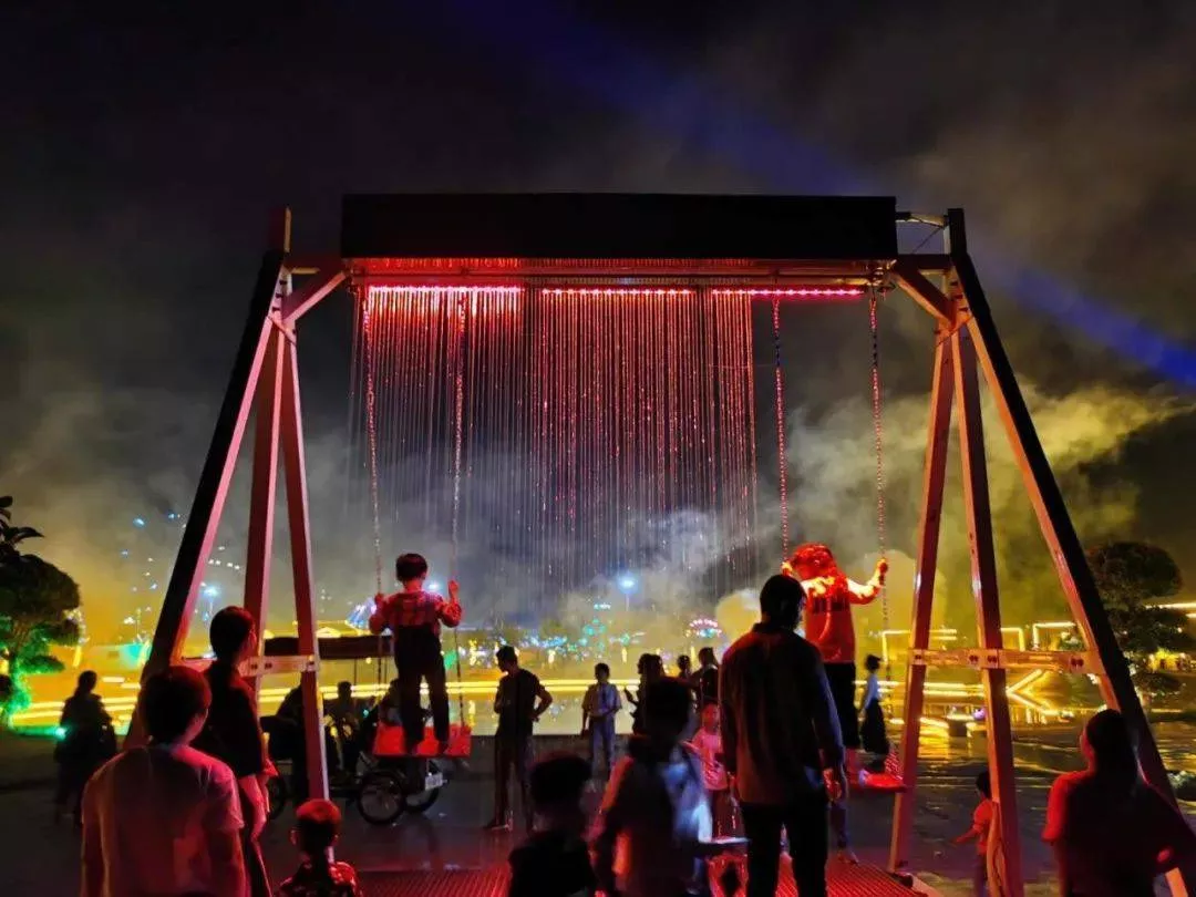 用炫酷的燈光照亮城市,用嗨爆的音符喚醒黑夜,焦崗湖影視城雙安廣場上空閃亮起一道五彩繽紛絢麗的煙火,“湖畔網(wǎng)紅不夜城”長期“綻放”。
