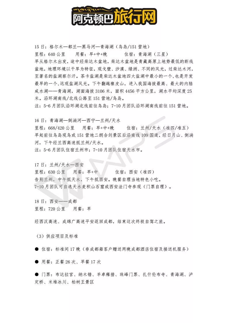 備注:前段10正餐6晚住宿。后段14正餐8晚住宿