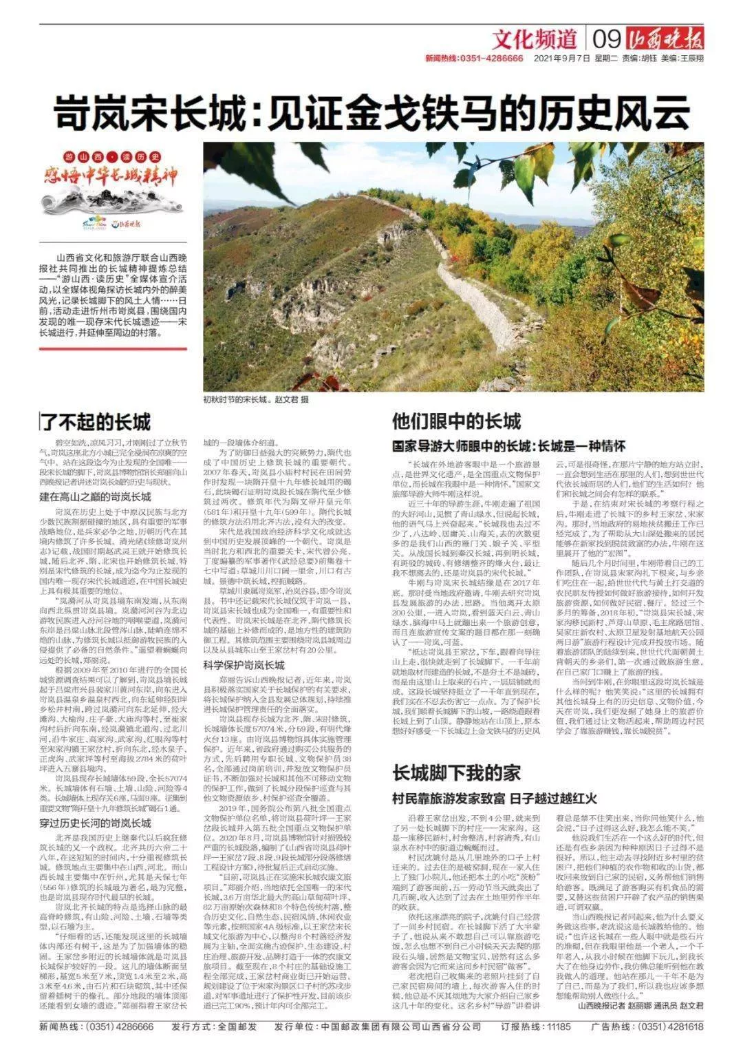 長城博覽在山西!在三晉大地上,分布著諸多長城遺存。為最大程度挖掘長城精神的內(nèi)涵,弘揚與展示長城精神在山西文旅資源中的價值,鍛造山西長城旅游板塊, 山西省文化和旅游廳聯(lián)合山西晚報社共同推出 長城精神提煉總結(jié)——“游山西·讀歷史”全媒體宣介活動,以全媒體視角探訪長城內(nèi)外的醉美風(fēng)光,記錄長城腳下的風(fēng)土人情……
