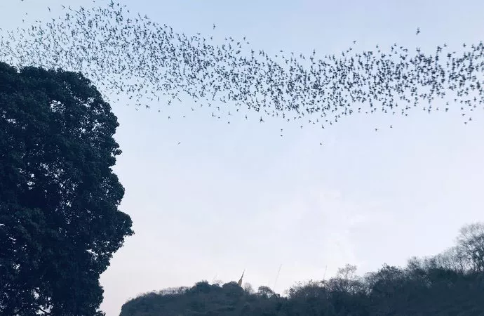 一般在晚上5:30-6:00這個時(shí)間段就是蝙蝠大舉出洞捕食的時(shí)候,上百萬只蝙蝠,行程了一條黑壓壓的長線,一直要延續(xù)1個小時(shí)的時(shí)間才能全部出去。