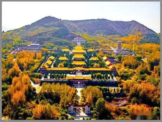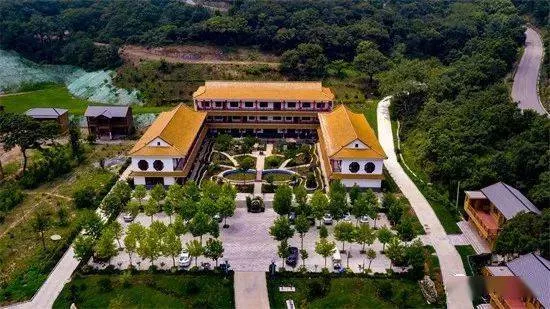 諸城常山文博苑占地1500畝,其中水面面積220畝,由萬佛寺、大榮博物館、竇府、古家具陳列館、畫像石陳列館、碧霞宮、民間藝術研究院組成。整個建筑群坐南朝北,依山傍水,采用傳統(tǒng)的宮殿式造型,結構嚴密,錯落有致。主體建筑沿南北向的中軸線排列,左右對稱,由下至上共九個層面,總建筑面積近10萬平方米,房屋1000余間。登高眺望,但見殿堂樓閣、鱗次櫛比,梵宇寶剎,金碧輝煌。