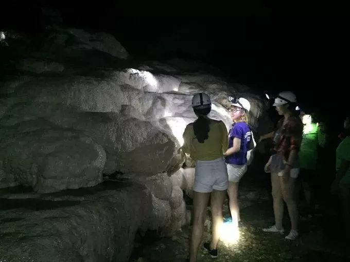 在配備一頂安全帽和探照燈后,從一個狹窄的洞口入內(nèi),是幾乎沒有護(hù)欄和燈光的洞穴探險(xiǎn)。你需要手腳并用的攀爬,趟過時不時深及腰部的水池,用探照燈觀測黑暗中的未知……但你也可以遇到突然映入眼簾奇特石頭、品嘗甘甜的泉水、觀測奇特的異國魚類、感受從來沒有過的蠻荒探險(xiǎn)。