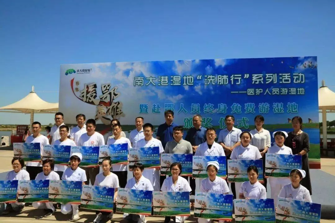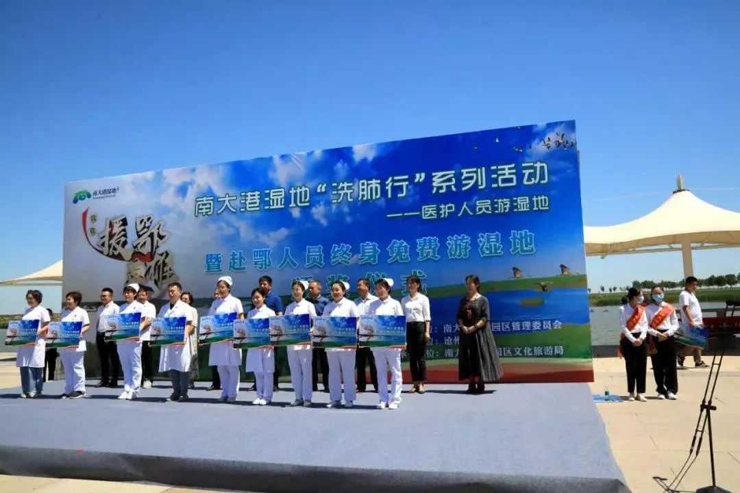 此次活動由滄州日報社、滄州市文化廣電和旅游局、南大港產(chǎn)業(yè)園區(qū)管理委員會聯(lián)合舉辦,南大港產(chǎn)業(yè)園區(qū)文化旅游局承辦。馳援武漢醫(yī)療隊成員可終身免費(fèi)游濕地,其他醫(yī)療人員今年可免費(fèi)游濕地,同行人員也可半價優(yōu)惠。據(jù)悉,這是南大港濕地本年度“洗肺行”系列活動之一,以此致敬為保護(hù)人民生命健康而努力的醫(yī)護(hù)英雄們。