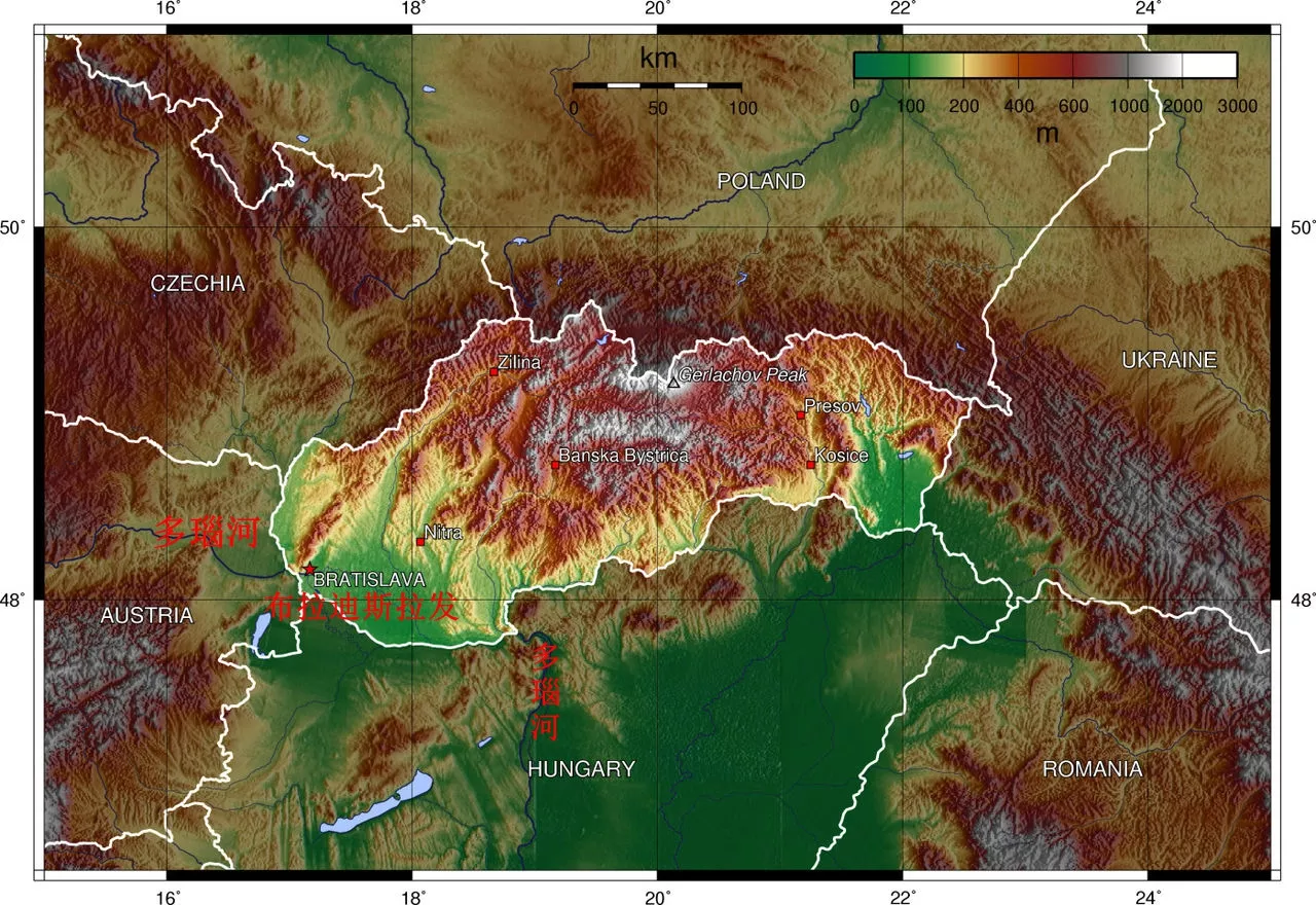 布拉迪斯拉發(fā)橫跨多瑙河兩岸,多瑙河從西向東南方穿越該市。