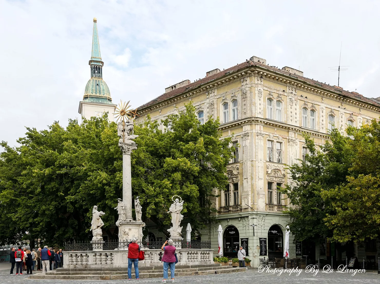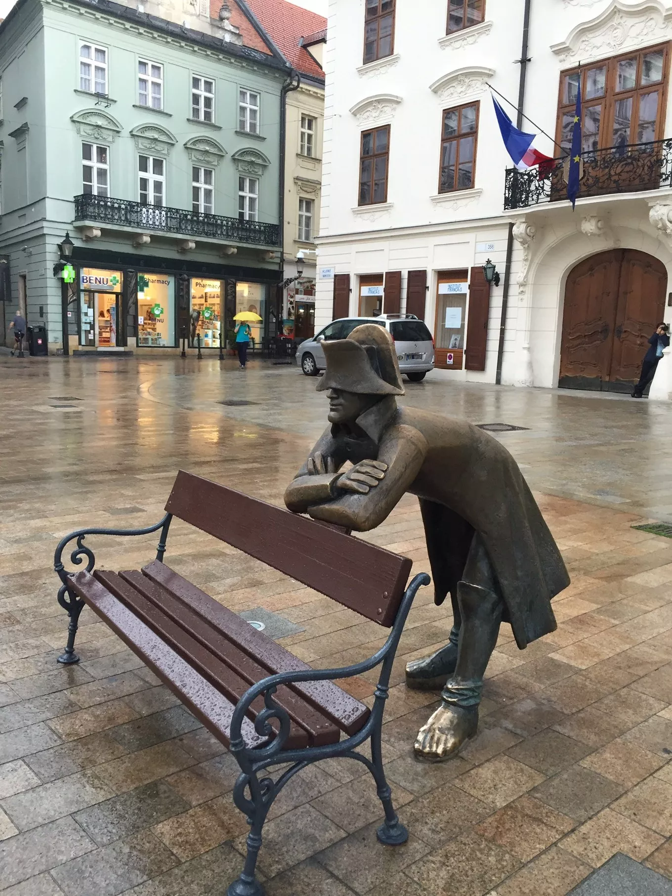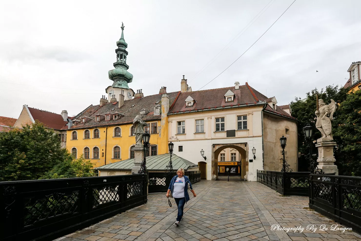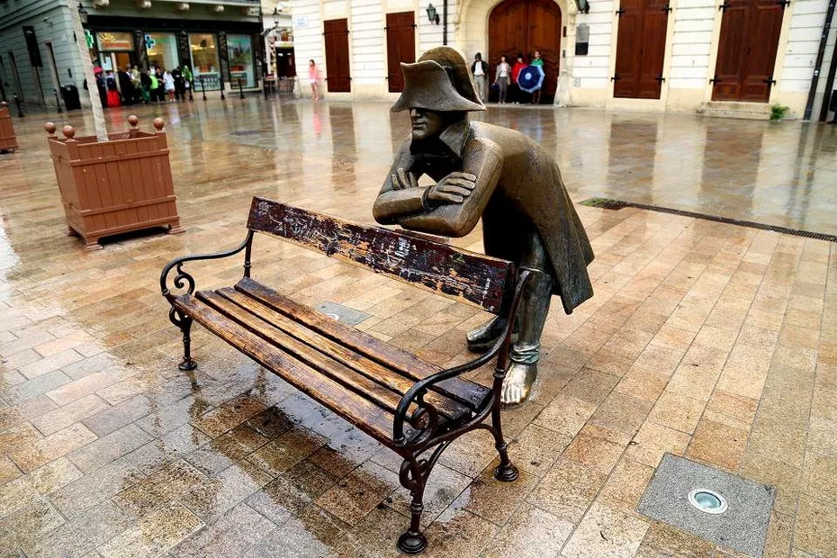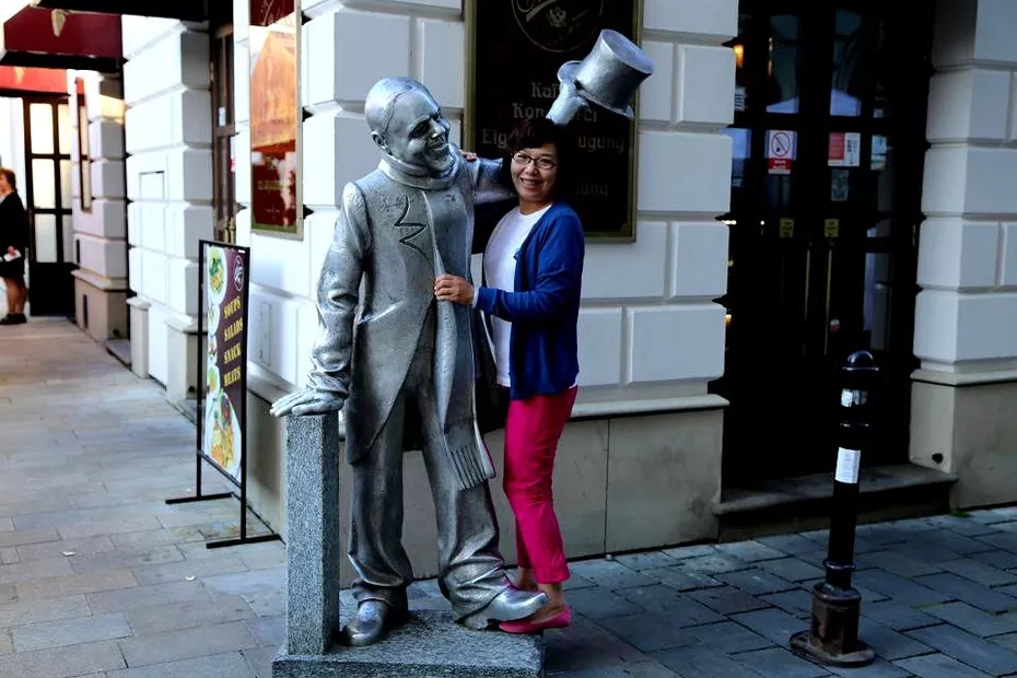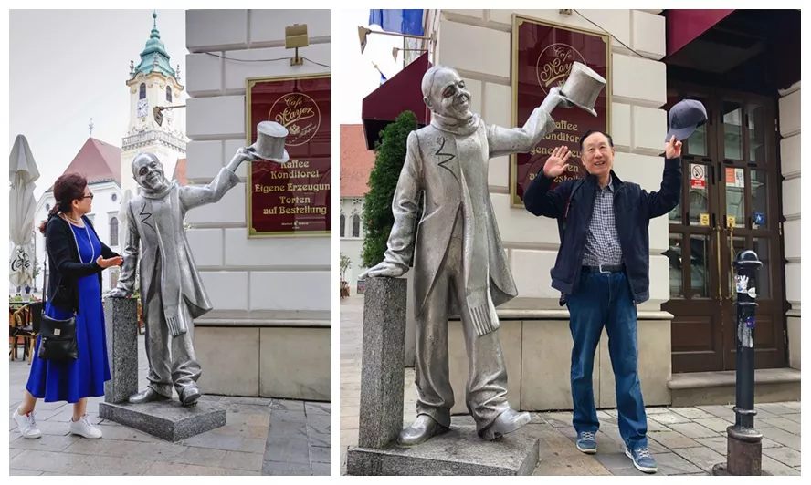 建于1380年的圣約翰教堂,建于14世紀初的布拉迪斯拉發(fā)現(xiàn)存最古老的米加勒門,建于18世紀巴羅克式風格的市政大廈,都給我們留在了極為美好的印象。老城的房子大多是巴洛克式風格的建筑,漫步在老城方石鋪就的街道上,又一次給我一種回到中世紀感覺。中央廣場是老城中心最大的廣場,廣場中央是建于1527年的羅蘭噴泉。這是16世紀為慶祝馬克西米連國王加冕而建的,噴泉頂端是手持寶劍、身穿盔甲的馬克西米連塑像。蜿蜒狹窄的步行街,色彩柔和的古建筑,人潮鼎沸的小餐館,都會讓我一步三回頭。當然,最讓我驚奇的便是各個街口富有創(chuàng)意的街頭雕塑,帽檐遮著眼睛、彎腰扶在長椅上的拿破侖,站在街角、舉著相機偷拍的攝影師,手拿紳士帽、笑瞇瞇看著過往行人的胖老頭,趴在井口、若有所思望著人群的管道工。所有這一切,都讓我和媳婦喜笑顏開,眉飛色舞。
