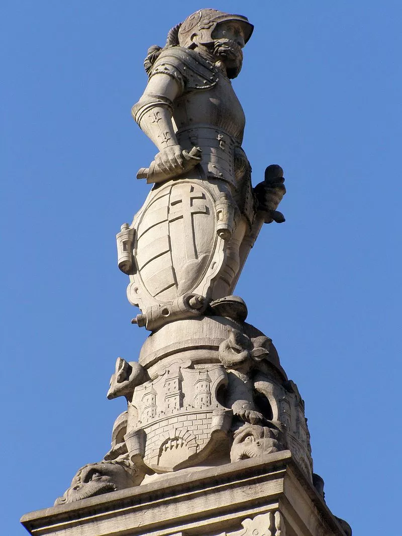 噴泉頂部是一尊馬克西米利安雕像,將其描繪為一位身穿全副盔甲的騎士,由大師A. Lutringer雕刻。