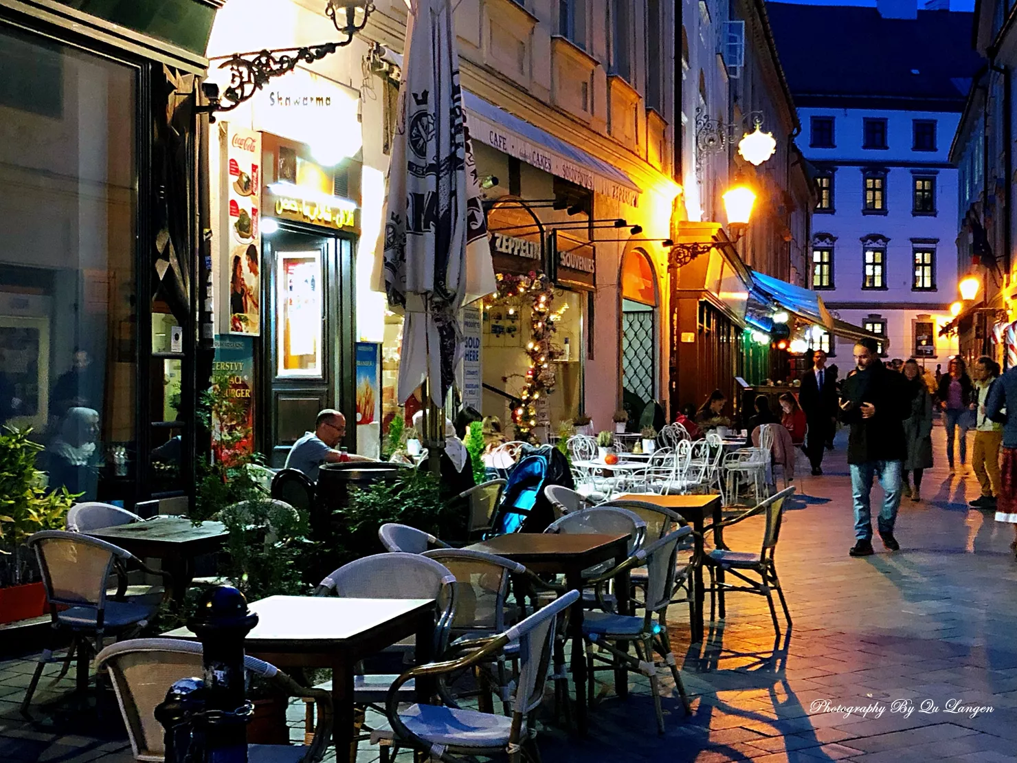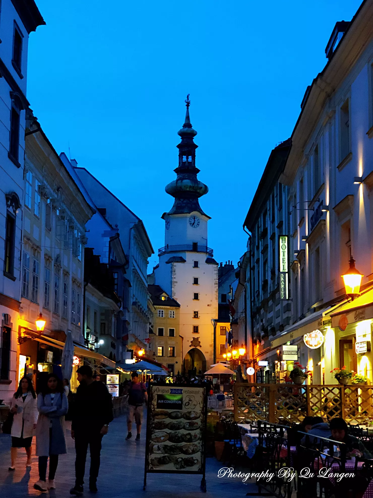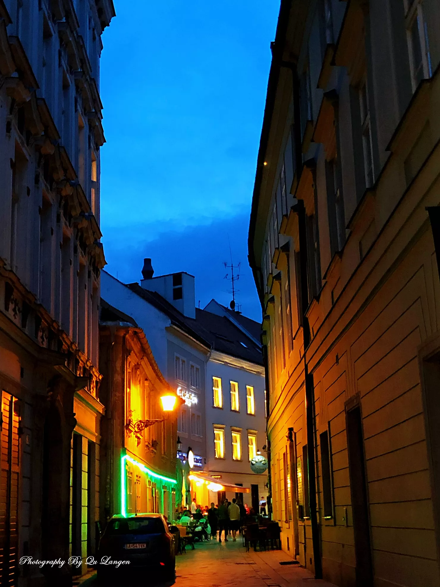 用過晚餐,我們又一次走回到那些老街之中,那是一絲眷戀,更是帶著依依不舍。布拉迪斯拉發(fā)的夜晚是美妙的,那是一種甜美的、寧靜的、沒有絲毫浮華的夜晚,它讓我們有一種似曾來過的感覺,更有一種賓至如歸的親切。一切都是那樣的順其自然,那樣的合乎邏輯,那樣的簡簡單單,我們已經(jīng)把這里的一切都裝進了心里。