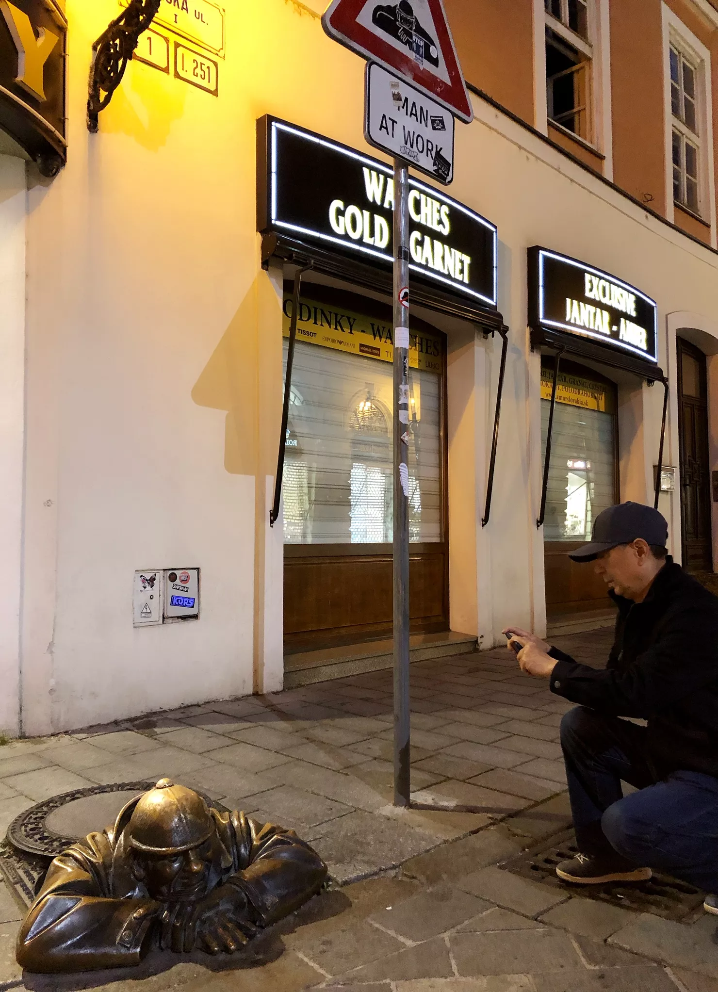 這位先生從地下道里探出來趴在地上,標志牌上寫著:“在工作的男人”,非常有趣!雕塑建成于1997年,是老城的地標之一,也是上鏡率最高的景點。