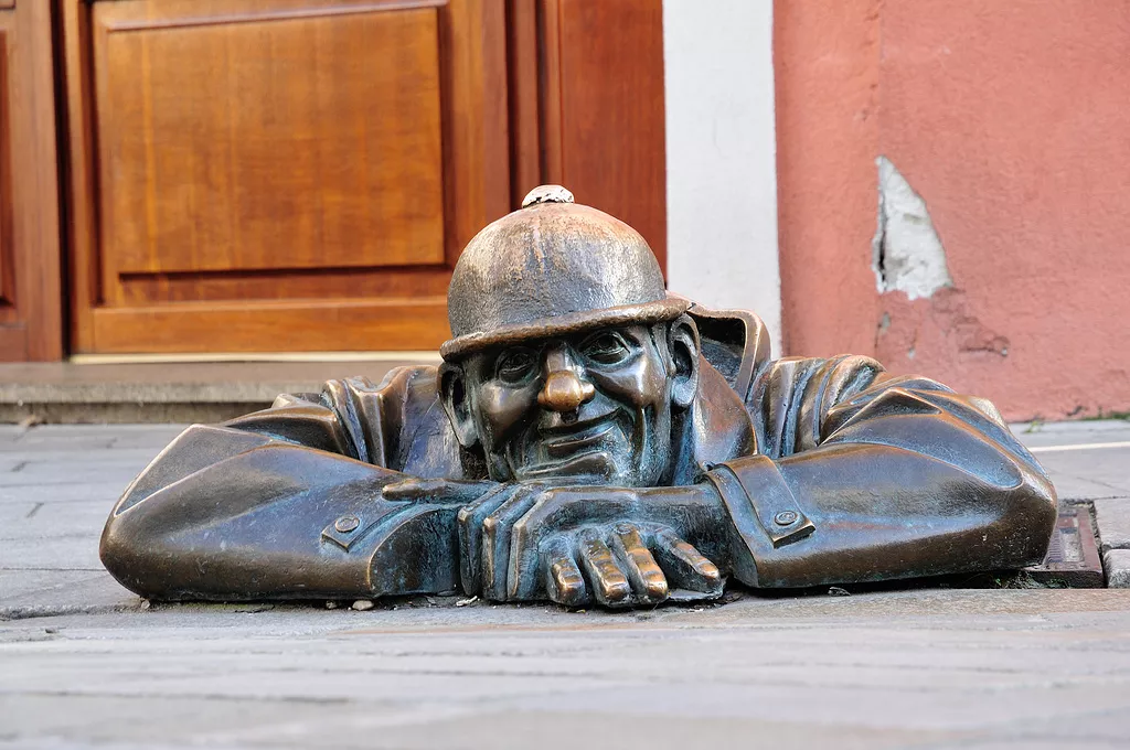 布拉迪斯拉發(fā)老城區(qū)內(nèi)有許多千奇百怪的雕像,它們并不精致,但生動有趣,不經(jīng)意的一些細節(jié)能夠折射出當?shù)厝松畹男蓍e與安逸以及豐富的想象力。