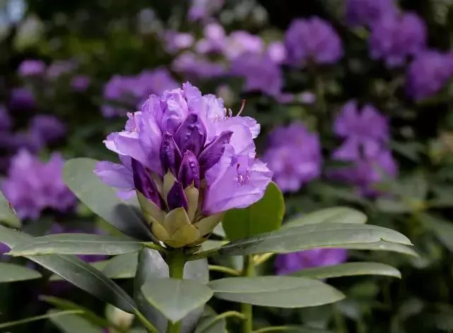 名花谷因種植世界名花——高山杜鵑而得名,自2002年起就開始進(jìn)行高山杜鵑產(chǎn)業(yè)化研發(fā)和新品種培育,目前除從德國、比利時、美國等國家引進(jìn)100多個高山杜鵑品種外,還從云南大理麗江等滇西地區(qū)引種馴化近30個野生高山杜鵑品種,根據(jù)審美觀和適應(yīng)性等標(biāo)準(zhǔn),從中篩選出黃底粉邊的‘貝茜’和紅色的‘紅星’、‘冠軍’等15個優(yōu)良品種進(jìn)行規(guī)模化生產(chǎn)。
