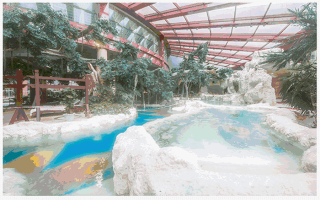 泳池里的水滑梯、溫泉地道、水上世界;溫泉區(qū)專門(mén)為孩子們?cè)O(shè)置的溫水池,都具備趣味性。