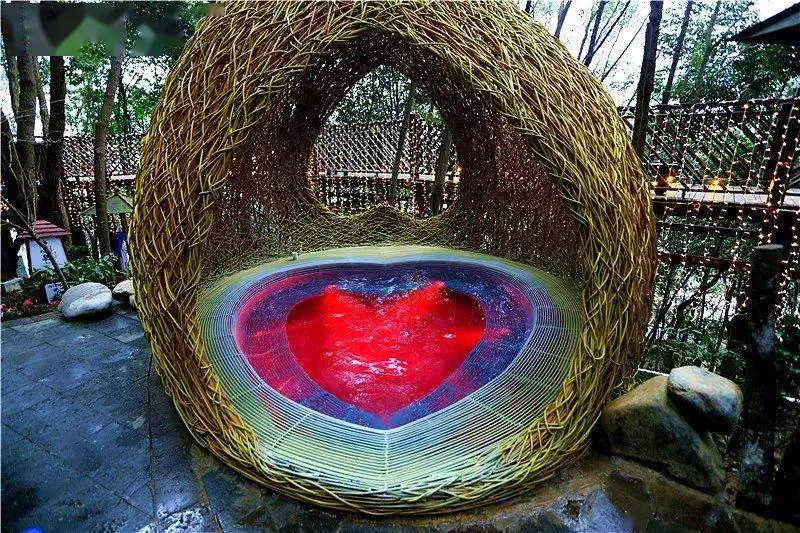 猩紅色的心型泡池是情侶鴛鴦戲水不二選擇