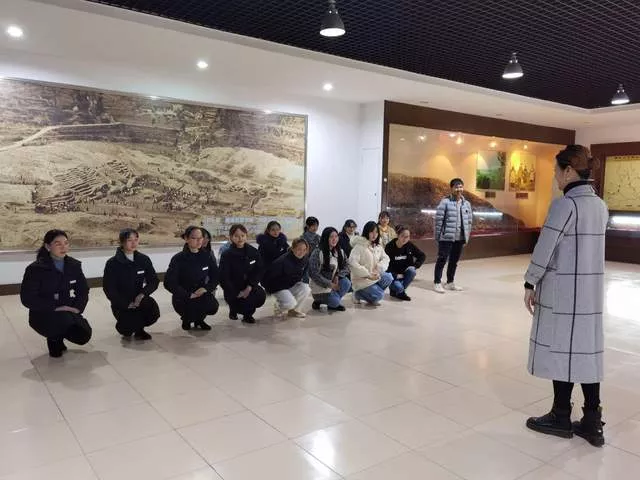 理論學(xué)習(xí)完畢,陶老師趁熱打鐵,帶領(lǐng)大家來(lái)到博物館二樓展廳,從順序講究、站姿坐姿、語(yǔ)言聲調(diào)等角度手把手教授講解過(guò)程中的現(xiàn)場(chǎng)禮儀,并傳授了自己鍛煉身形的各類(lèi)小妙招,大家紛紛表示非常實(shí)用。