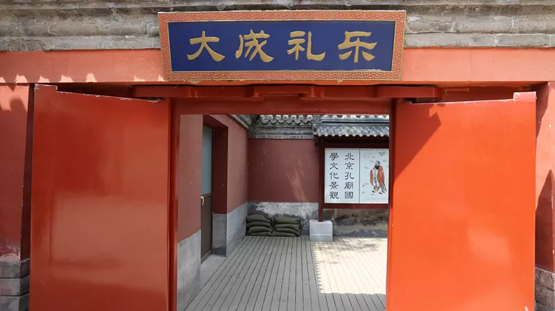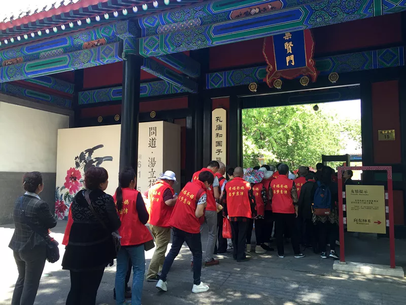 路右邊的紅墻綠瓦把街道點綴的古香古色,濃濃的京味兒又夾雜著一絲貴氣,它是最好的指示標(biāo),順著墻走就到了今天的目的地,孔廟和國子監(jiān)博物館