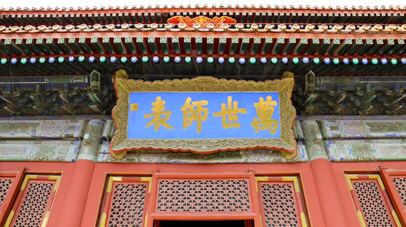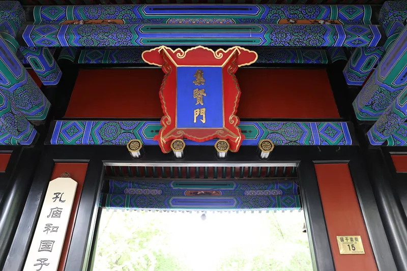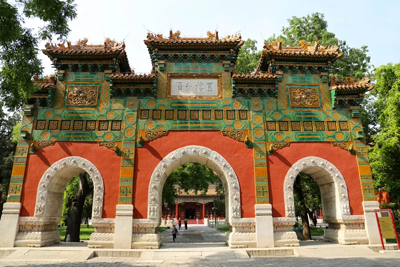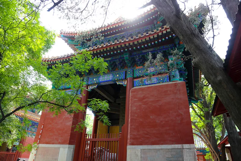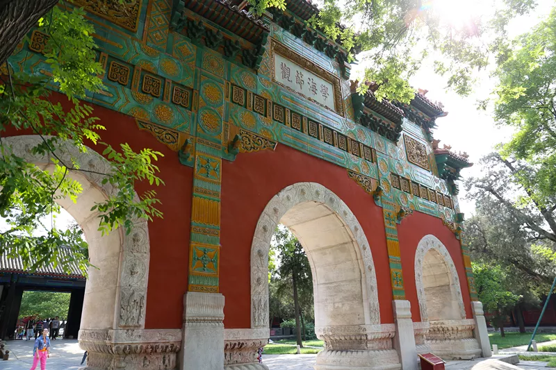 琉璃牌坊通常建在寺廟的門前,國子監(jiān)的這座是北京唯一一座為教育設(shè)立的牌坊,頂上覆蓋著黃色琉璃瓦,具有典型的皇家建筑特征。