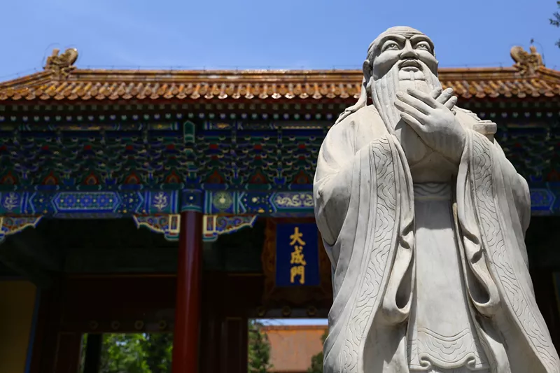 大成門前的孔子石像略萌,笑不露齒且一臉寵溺的看著你,有意思的是來拜孔子的外國人特別多,有的還會一本正經(jīng)地鞠個躬,可見兩千多年前孔夫子的儒家思想影響了全世界。