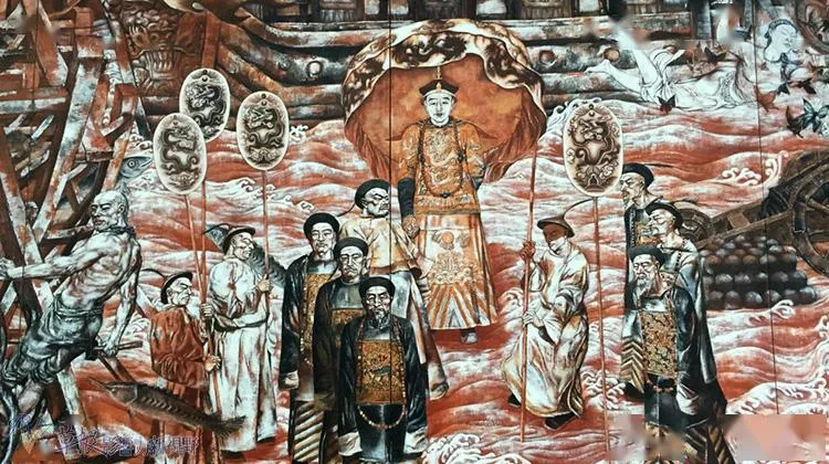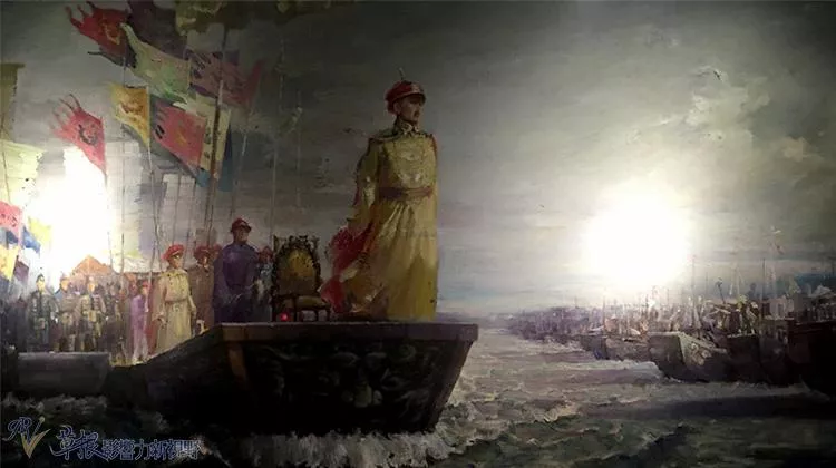 清皇帝乘艦巡視的畫像,此河可能是指松花江