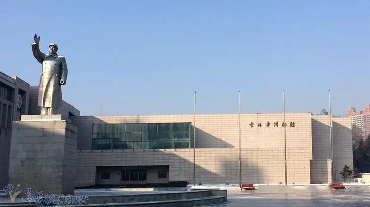 吉林博物館位于世紀(jì)廣場(chǎng)南邊,前方有毛澤東雕像