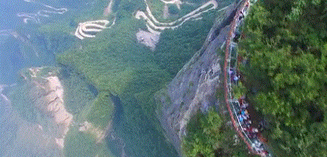當(dāng)然提起天門(mén)山,它還有一個(gè)——“天門(mén)山懸崖玻璃棧道”,全長(zhǎng)約110米,橋?qū)?.5米、落差188米、是目前省內(nèi)在建的玻璃棧道中落差最大的懸崖棧道。