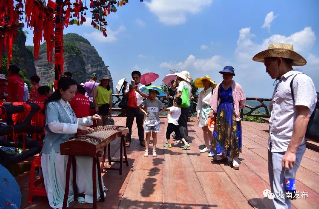 景區(qū)自2017年4月閉園升級(jí)改造后,景區(qū)推出全長(zhǎng)200多米玻璃棧道,棧道緊貼峭壁,在懸崖之上凌空蜿蜒穿行。置身武當(dāng)全景的U型玻璃眺臺(tái),遠(yuǎn)眺青山與碧空相映,云霧與山色相接,盡收眼底的南武當(dāng)美景令人驚嘆,腳下的絕壁天險(xiǎn)、萬(wàn)丈懸崖刺激到讓人尖叫。