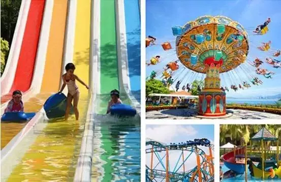 度假村設(shè)施包括仿照迪士尼樂園規(guī)模修建的大型游樂場、4D 電影院、東南亞最大的泳池、長達(dá) 700 米的私屬海灘、規(guī)模不小的海洋館與頂級 SPA 會所等設(shè)施。