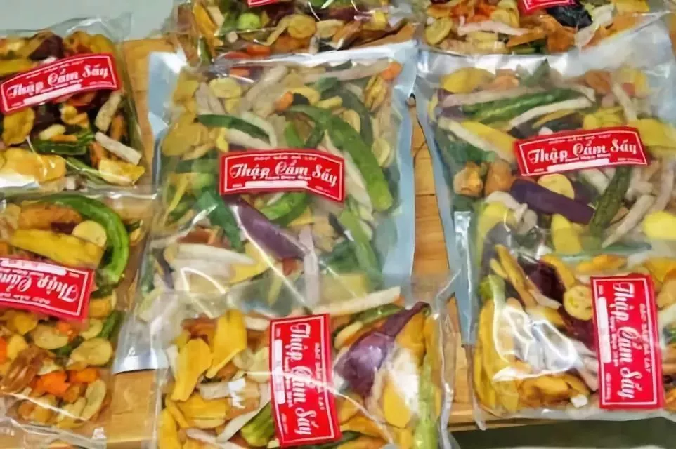 綜合蔬果干是精挑越南當(dāng)?shù)貎?yōu)質(zhì)蔬果果實,在加工鮮果成為干制產(chǎn)品的過程中不添加任何化工原料,并以特殊加工方法完全保留果實的品質(zhì)。果蔬干中常見的有菠蘿蜜、芋頭、紅薯、辣椒、秋葵、豆角等等。