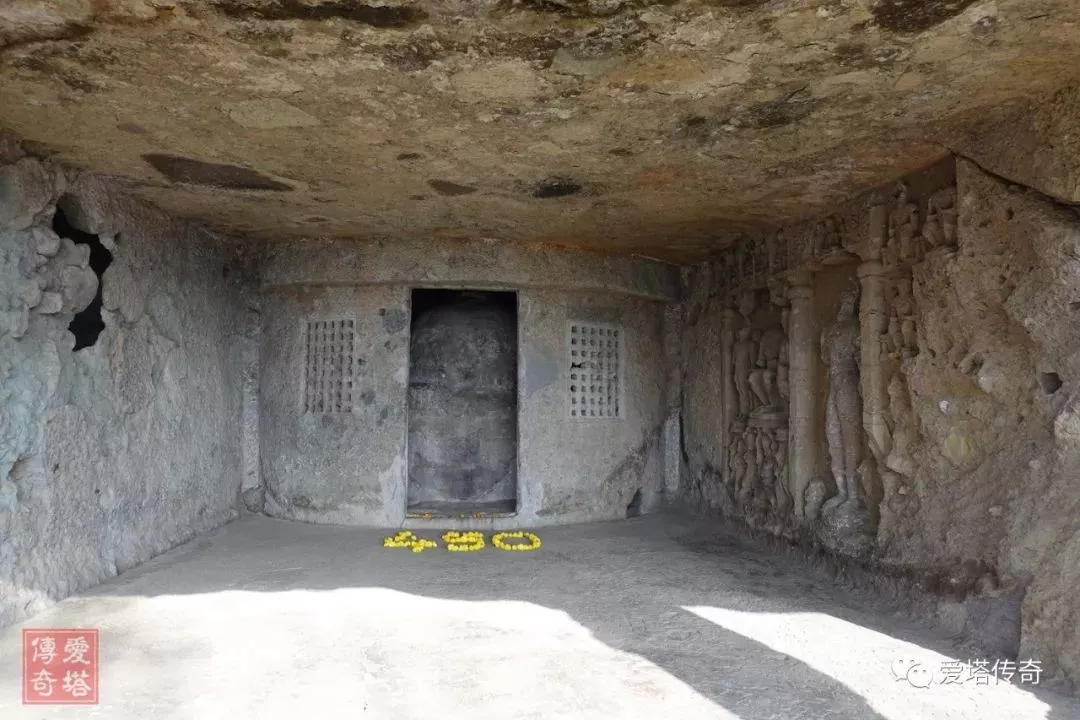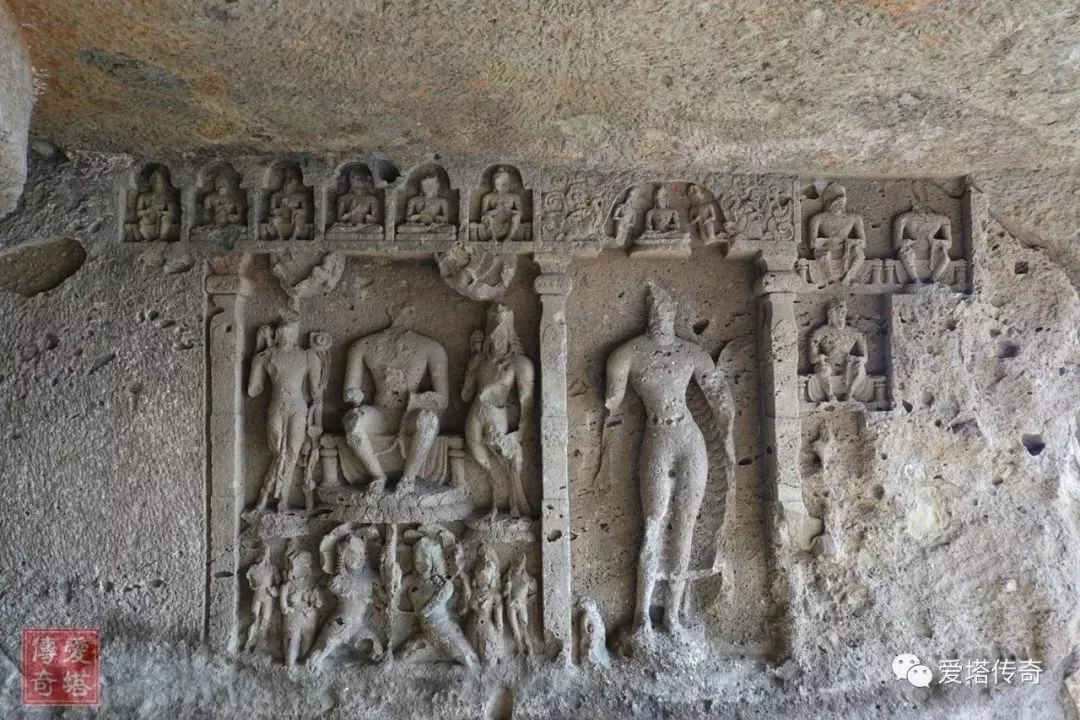 周圍并沒有山,只有一道突出的巖石,石窟就開鑿在巖石上,佛教,一共有十幾個窟,大約開鑿于2~6世紀