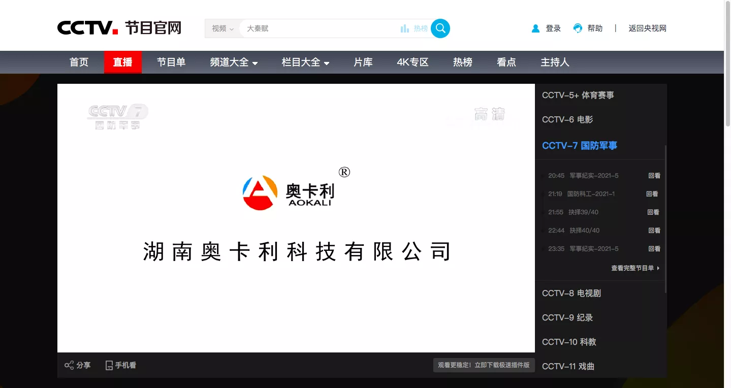 湖南奧卡利科技有限公司與央視攜手合作,簽訂廣告合作協(xié)議,且于2021年1月在CCTV-7國防軍事頻道進行央視廣告展播,通過此次央視的助力,輻射范圍更大,品牌宣傳受眾更廣,品牌前景越發(fā)明晰,彰顯我司發(fā)展邁向新臺階。湖南奧卡利將以激情飽滿的狀態(tài)迎接新挑戰(zhàn)、新機遇,擔當新責任,展現(xiàn)新作為。