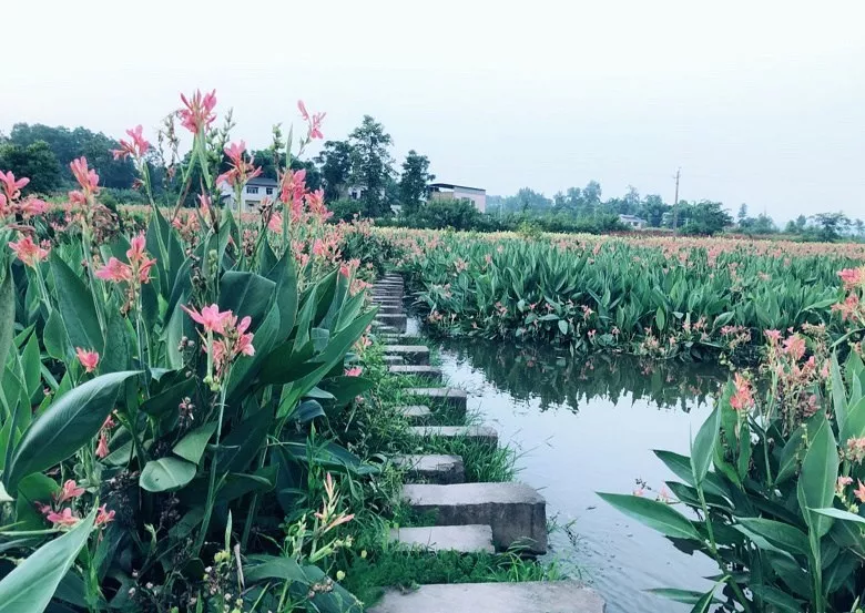 除了王蓮之外,荷花村還有大片的水生美人蕉,走在石橋上,置身紅色花海中,親近清澈的水流,遠離喧鬧的都市,在如此幽靜美麗的大自然中徜徉漫步,頓時會讓人心情大好。