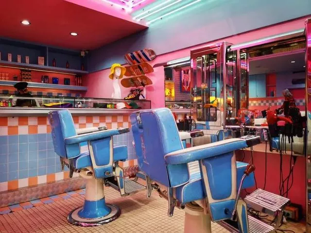 這家理發(fā)店在泰國潮人圈子里可謂人盡皆知,發(fā)型屋主戰(zhàn)力是明星的御用發(fā)型師Sunny和Toni。室內(nèi)設(shè)計效仿了美國barber風(fēng)格,打造奇特虛幻與現(xiàn)實共存的空間。里面各色閃爍的霓虹燈晃的人一臉如夢似幻,還有來自全球各地的復(fù)古裝飾,眼光獨到貨真價實。
