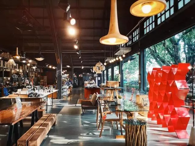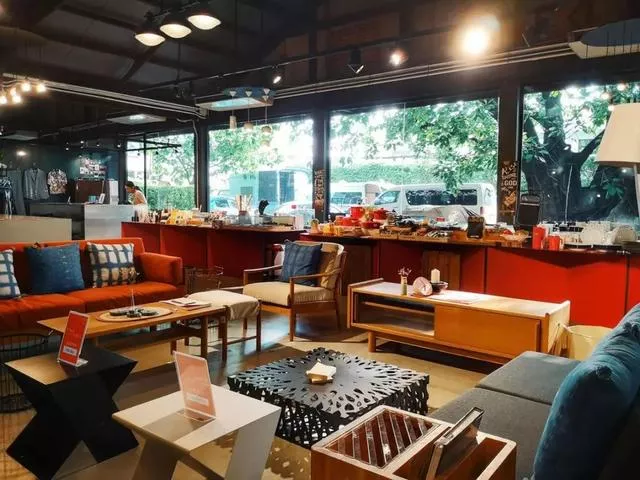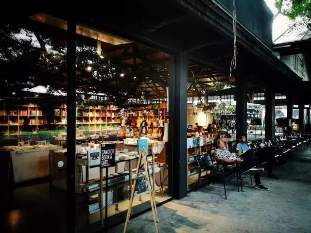 這家店據(jù)說是由泰國的建筑大師Duangrit Bunnag打造。由于原本的事務(wù)所不再使用,所以尋尋覓覓來到這里找到了這幾個十幾年的廢舊倉庫,加以改建之后,形成了這個集咖啡店、書店、家具店、展館、辦公室、餐廳于一體的復(fù)合式小區(qū)。
