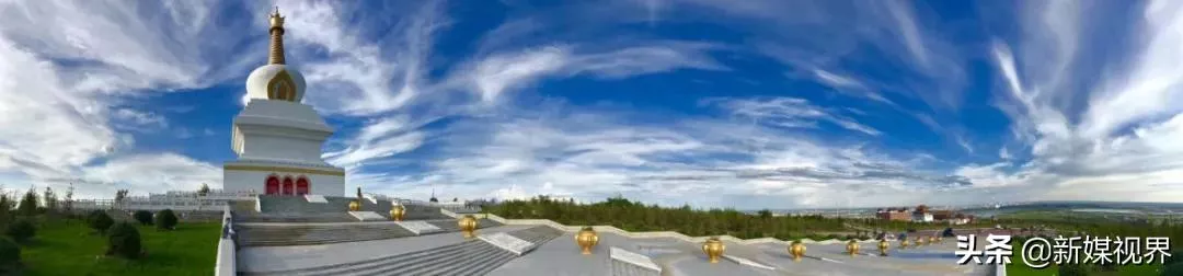 圣潔的敖包山環(huán)抱著一塔兩寺,伊敏河和海拉爾河像兩條銀白色的哈達(dá),護(hù)佑著這片神圣的土地。放眼望去,草原明珠海拉爾與遠(yuǎn)處的草原、森林、河流、湛藍(lán)的天空遙相呼應(yīng),構(gòu)成一幅人與自然和諧的美景圖。