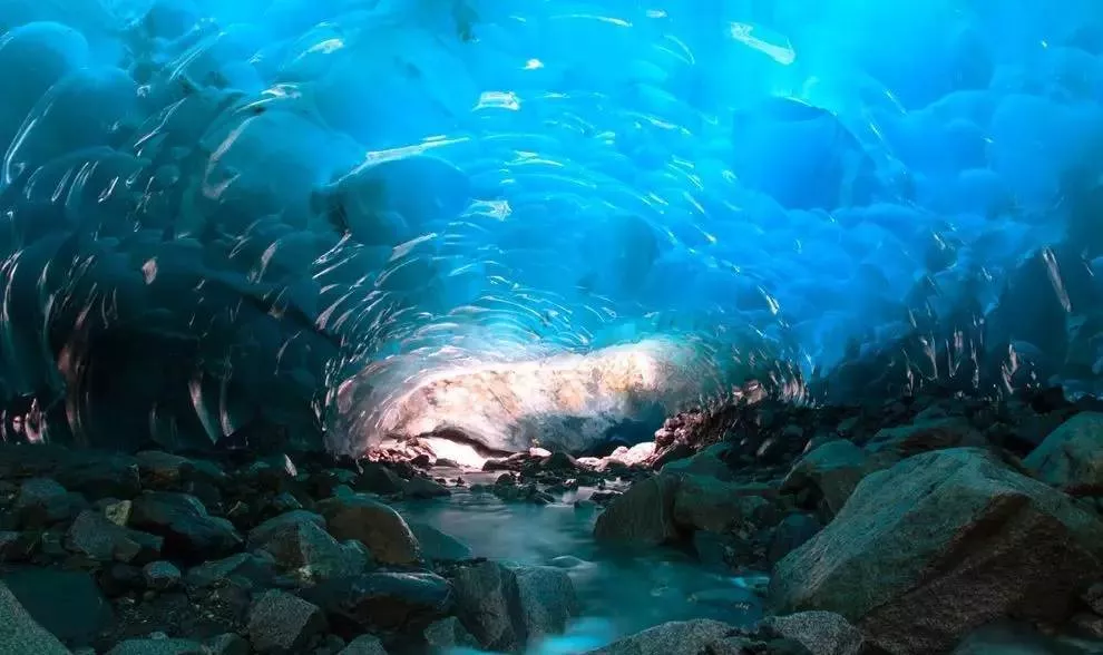 這“活著”的冰川風采一點也不為過,這里的冰川是形成于四千多年前的冰河世紀,常年的積雪擠壓和雪水形成了密度較高的冰。
