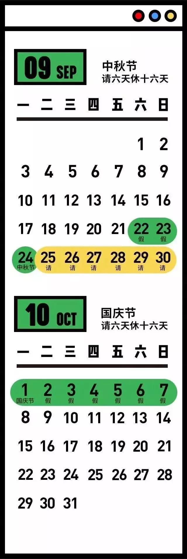 這個月請6天假就可以休息16天?應該慶幸還好中秋錯過國慶,不然又少了幾天假。如果你有7天年假,此時不用更待何時?