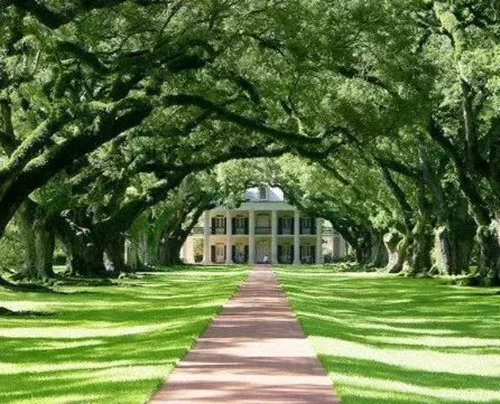 在New Orleans 和 Baton Rouge(路易斯安那州府)之間有一座古老的莊園,名字叫“Oak Alley Plantation”(橡樹(shù)莊園)。莊園以其絕美的景色及富有歷史的特點(diǎn),被列為美國(guó)國(guó)家歷史地標(biāo)之一。Oak Alley Plantation 的名字來(lái)源與其莊園里種植的28 棵、有著300 多年歷史的古老橡樹(shù)有關(guān),這28 棵橡樹(shù)整齊排列在莊園小道兩邊,一直延伸到密西西比河邊,大氣莊重而又雅致,似乎每一棵樹(shù)都在敘說(shuō)著一段莊園的故事。