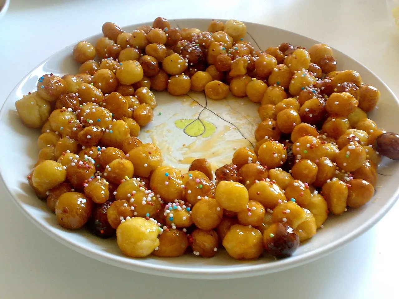 蜂蜜小丸子是西西里島著名的甜點,搓成松果形的面團口感煙韌,小丸子與蜂蜜頗為配合。