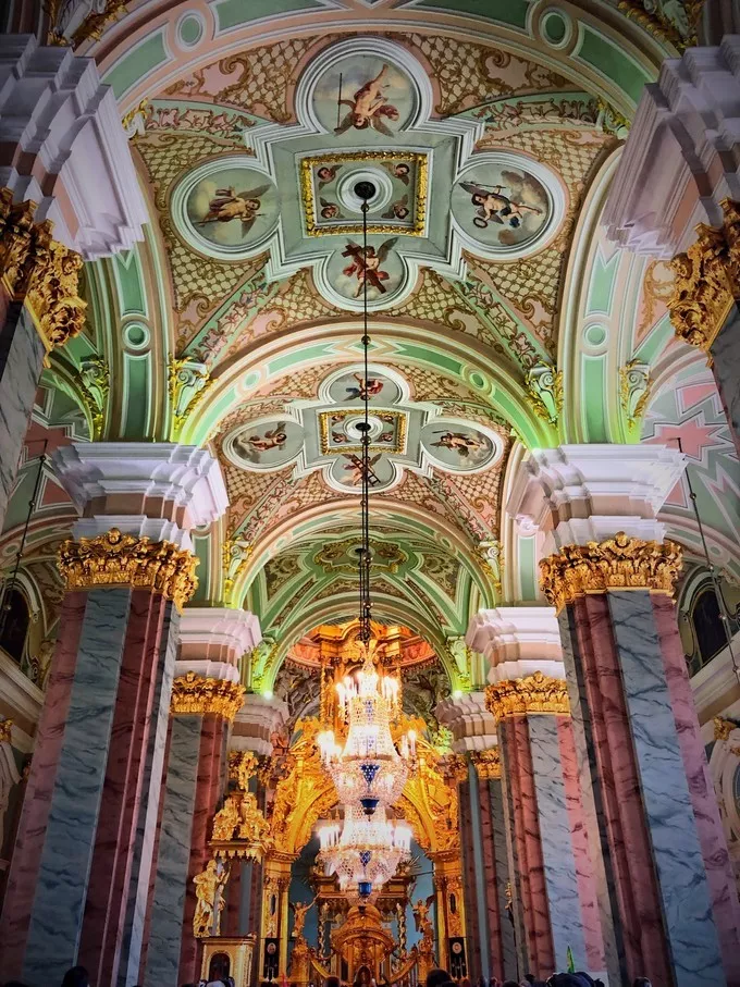 葉卡捷林娜宮又稱沙皇村,是葉卡捷琳二世女皇修建的。宮殿的格局則是建筑精巧淫靡,色彩清新柔和,彌漫著女性的柔美、嬌媚的風(fēng)韻。整個宮殿顯示出來葉卡捷琳娜女皇的品味和思想。它于1990年被列入聯(lián)合國世界遺產(chǎn)名錄。園中到處是詩,到處是畫,時而金碧輝煌時而高貴典雅。