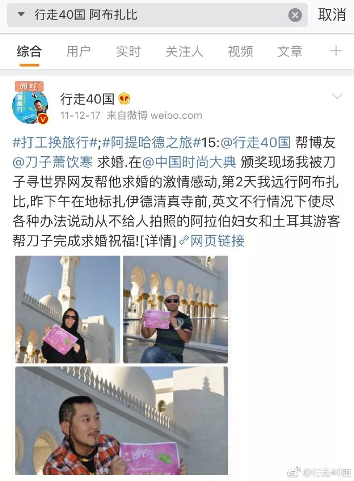 第一次去阿布扎比是2011年12月,整整6年了。那次印象最深的是幫我的一個粉絲-“刀子”,向她的女友“沙沙”求婚,在扎伊德清真寺前,不懂英文的我使出渾身解數(shù),居然說服了從來不讓人拍照的阿拉伯婦女舉起“沙沙,嫁給刀子吧!”的中文牌子拍了照。